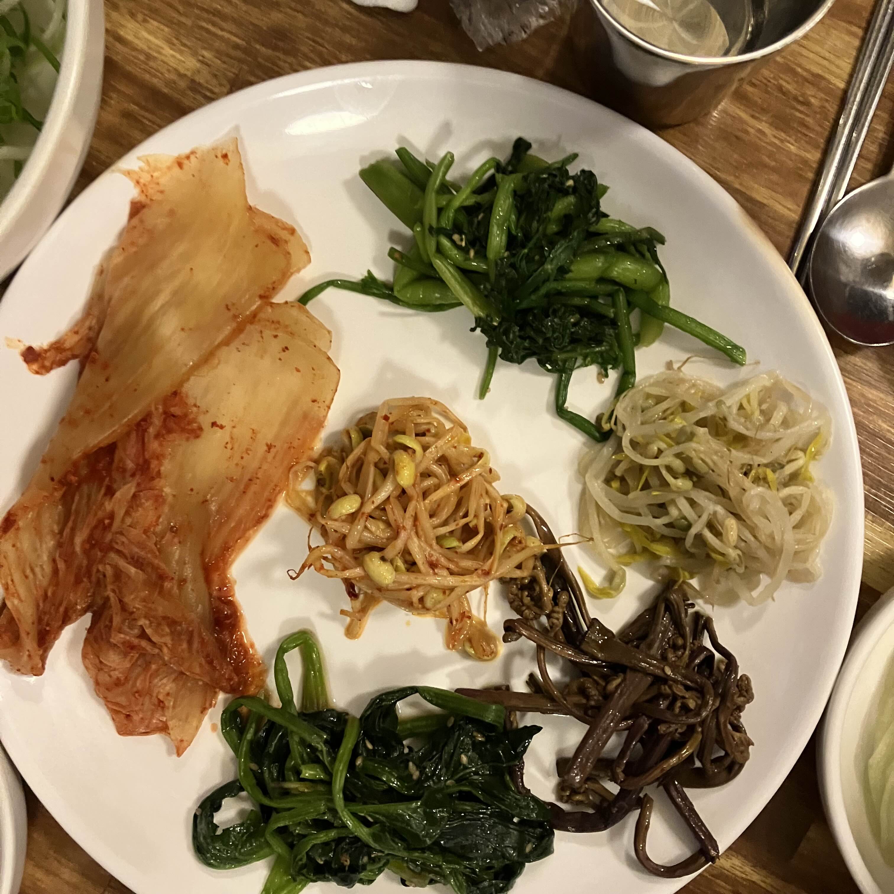 신김치,고사리,콩나물,숙주,시금치,미나리