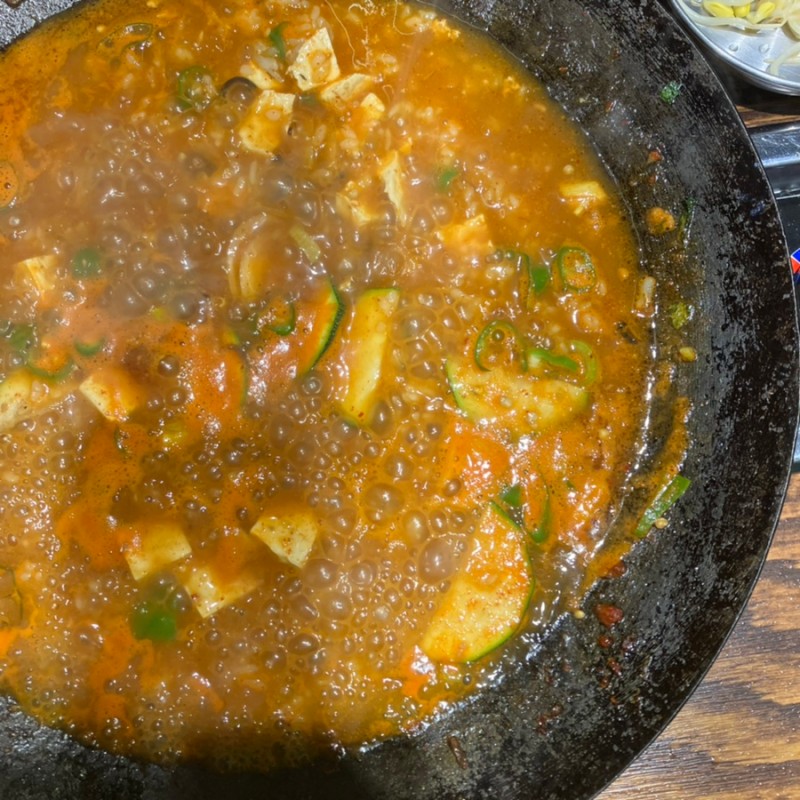 보글보글 끓어서 밥에 국물이 배인후 먹음 맛있다